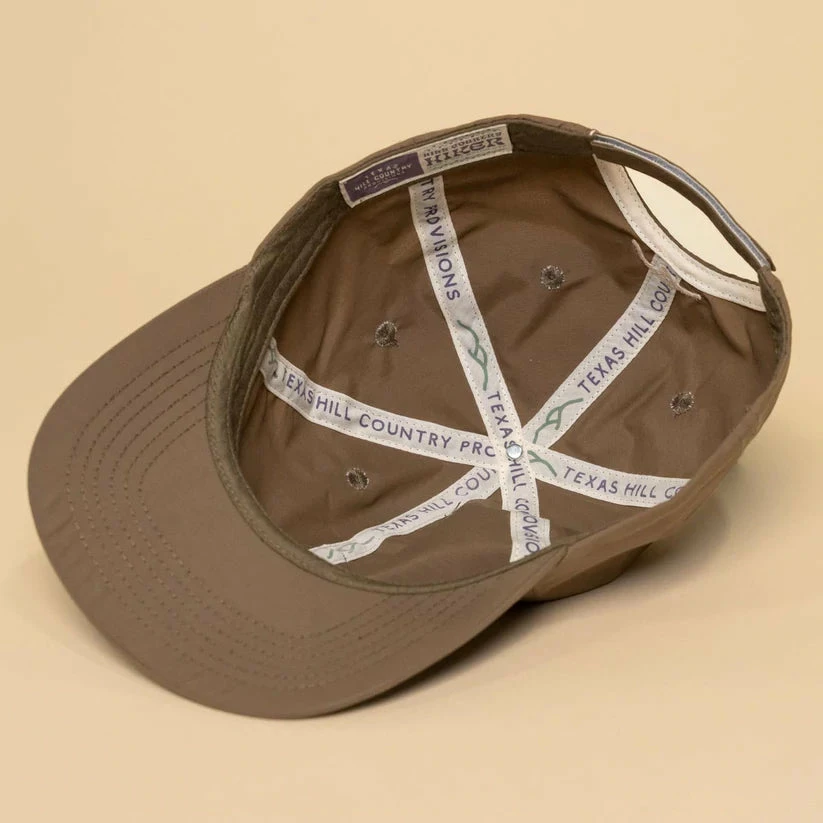 Custom designed 6-panel unstructured hat with an adjustable velcro back strap. Crown is a mid-depth and fits a wide variety of head shapes and sizes. Bill is slightly curved and can be bent further or flattened out to your liking.