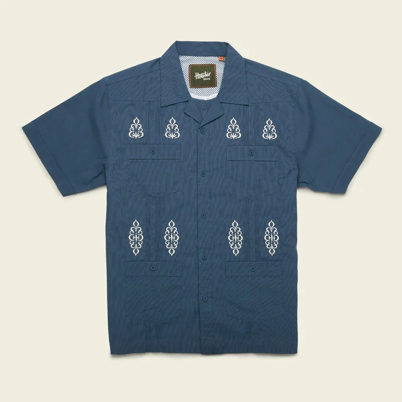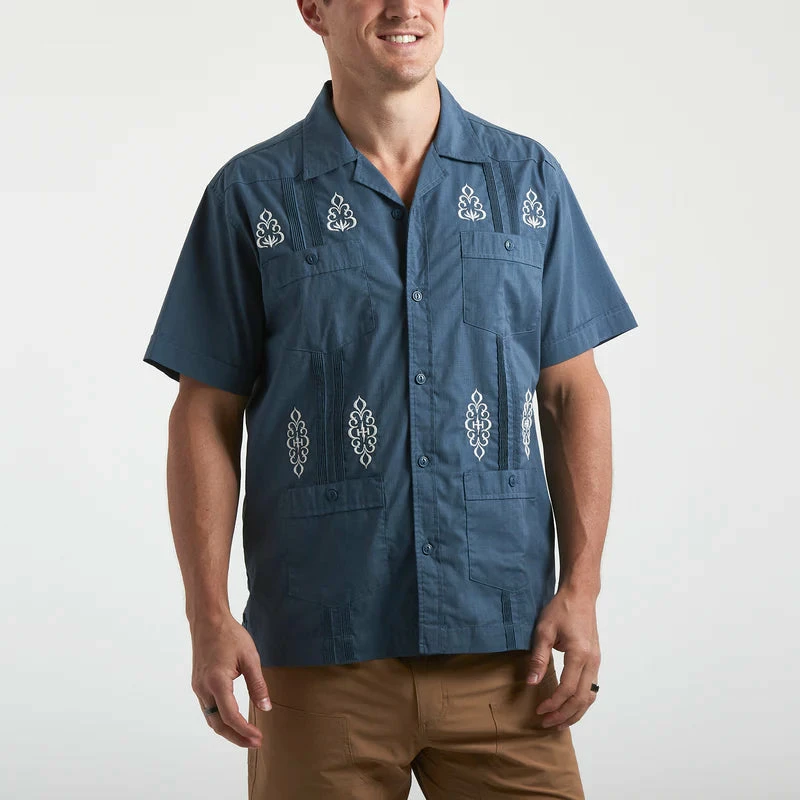 We love reinventing traditional garments and bringing them into the modern age with upgraded fit and fabric. One of our favorite platforms for reinvention is the Guayabera. We based our latest rendition on the classic but gave it some serious Howlerfication with a mesh lined vented back yoke, totally unique embroidery, technical cotton-poly stretch fabric that dries quickly and enlarged pockets for convenient beer storage so you can take your turn throwing washers. Dress it up and look like you have your act together or just throw it on with your flops and boardies.