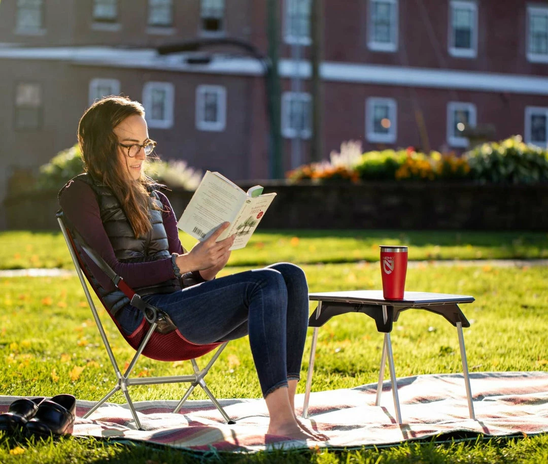 No matter where you’re headed, Moonlanderâ„¢ is the best new addition to your camp kit. With a dual-height, convertible design, Moonlanderâ„¢ can provide a secure landing for a pair of wine glasses on a picnic blanket, or the perfectly elevated side table for your Stargazeâ„¢ and Moonliteâ„¢ recliners. The setup is a charm — like opening a pop-up book, and it packs small enough to fit in the laptop sleeve of a backpack.