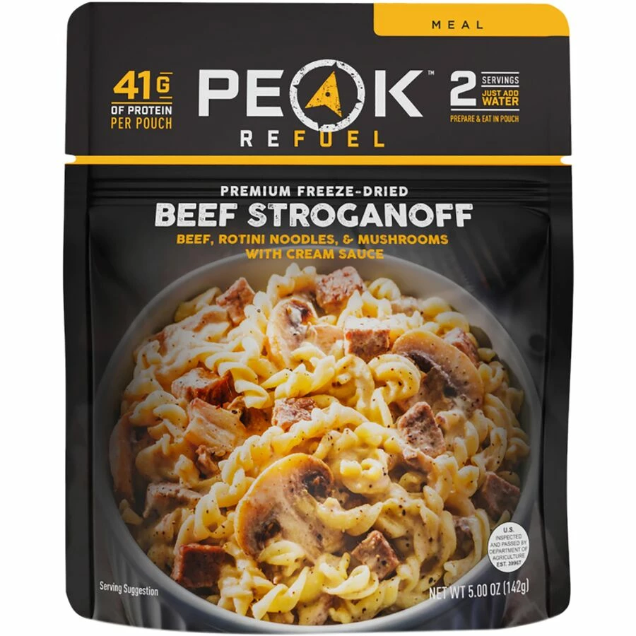 After a long day of following your compass, settle down with some home-style stroganoff mixed with firm spiral noodles, real ground beef, mushrooms, spices, and pure goodness. Now how do we do that? By only using premium, freeze-dried, all natural ingredients that keep their shape, taste, and nutritional value. Giving you 41 grams of protein, 30% of your daily iron, and 25% of your daily calcium, just add 3/4 cups of water and restore your energy and get ready for the next stage of your adventure.
