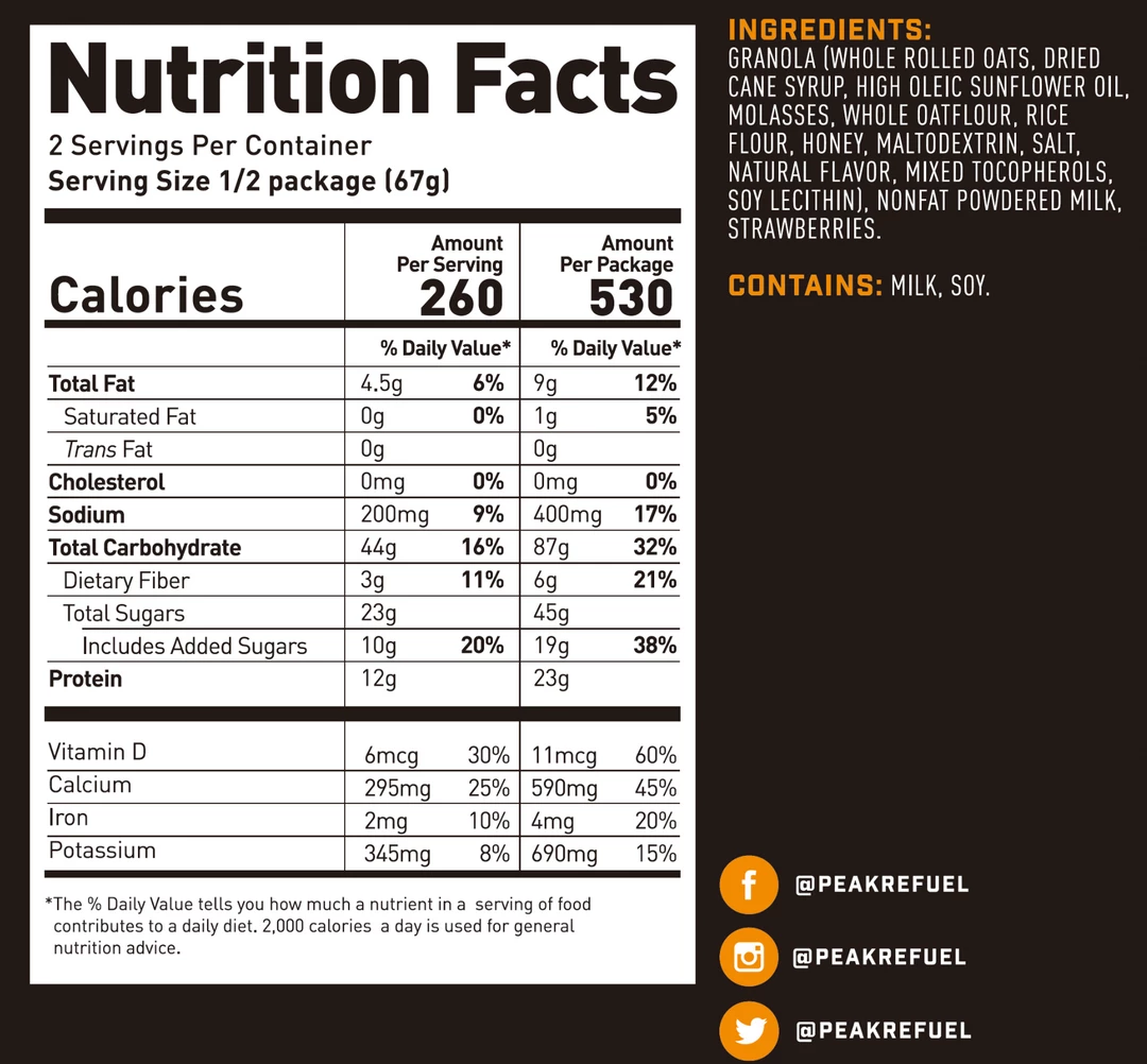 When you’re in the thick of adventure and craving a home cooked meal, Peak Refuel has your back. Our Strawberry Granola hits the spot with real ingredients sourced from a family farm in the USA. And if you thought granola couldn’t fill you up…think again. With 23 grams of protein and 21% of your daily fiber, just add 1 cup of cold water and you’ll be energized for an entire morning of epic hikes, sketchy climbs, and pushing boundaries.