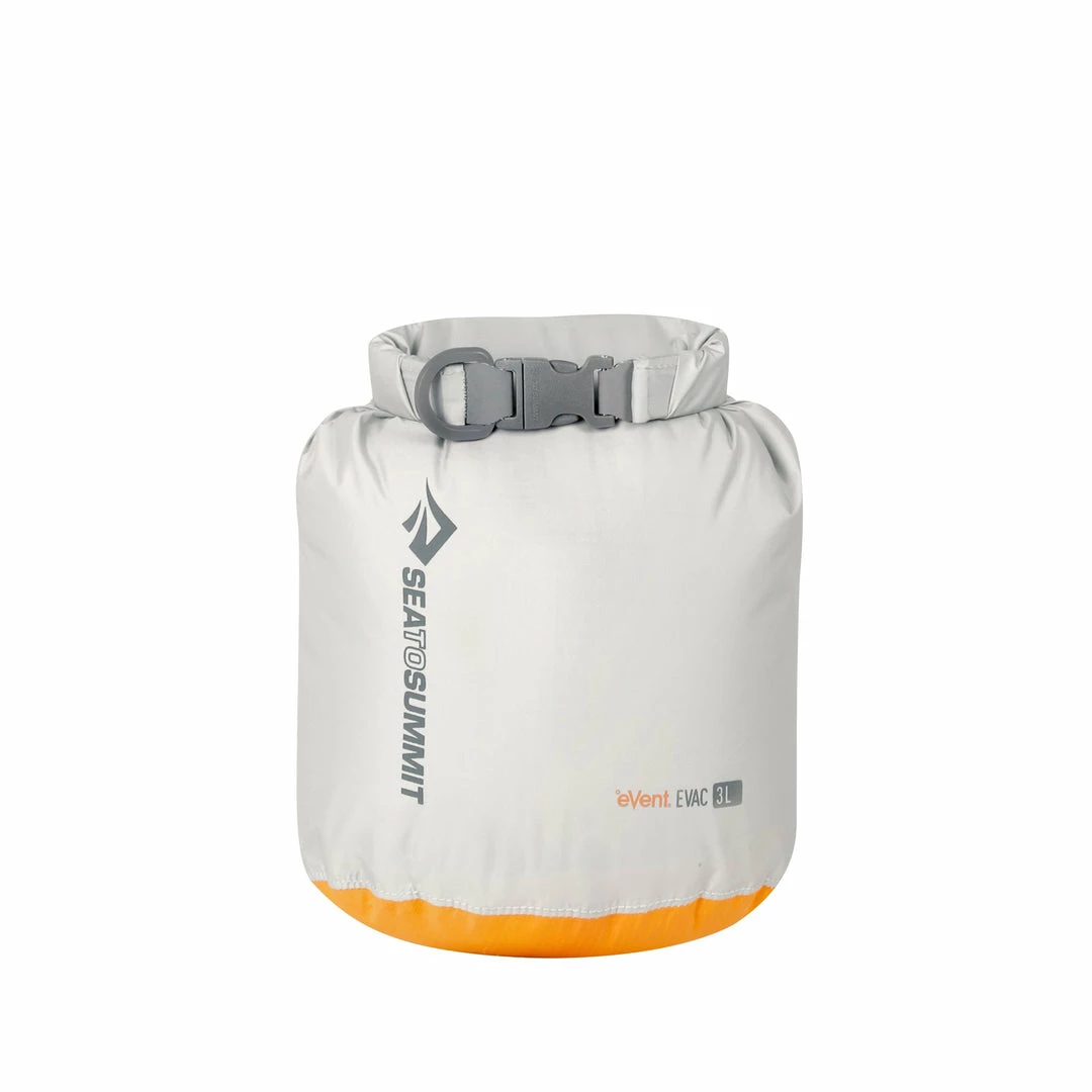The eVac™ Dry Sack utilizes 70D lightweight nylon fabric for strength and eVent® waterproof fabric on the base to allow eVac-uation of air for compression. It’s an excellent option for storing and compressing clothes and sleeping bags without the use of straps. Just pack the items in, roll the sack down and push the air out to save valuable packing space within your backpack. They’re an oval shape, making them perfect for sliding into the contours of your pack and all seams are double stitched and tape-sealed.